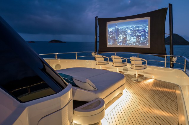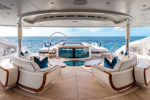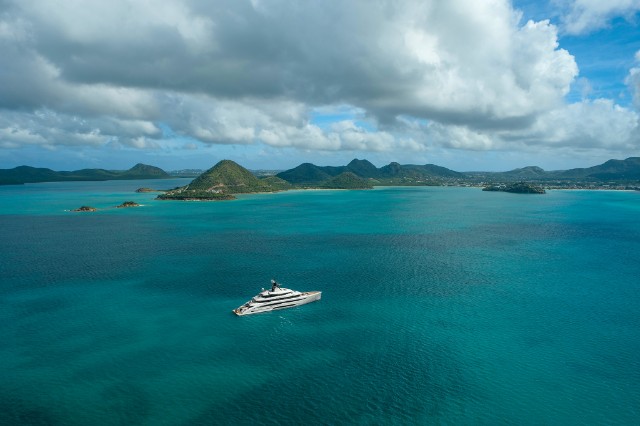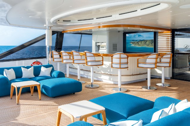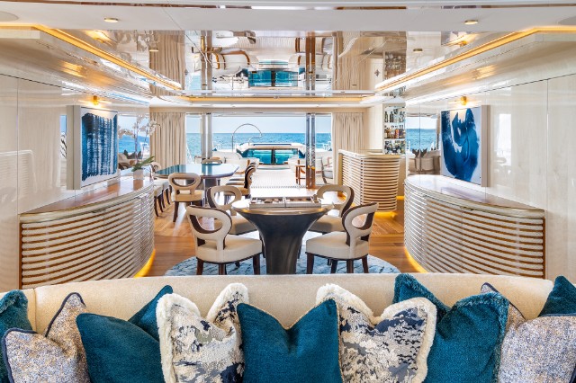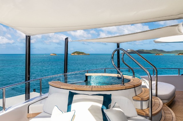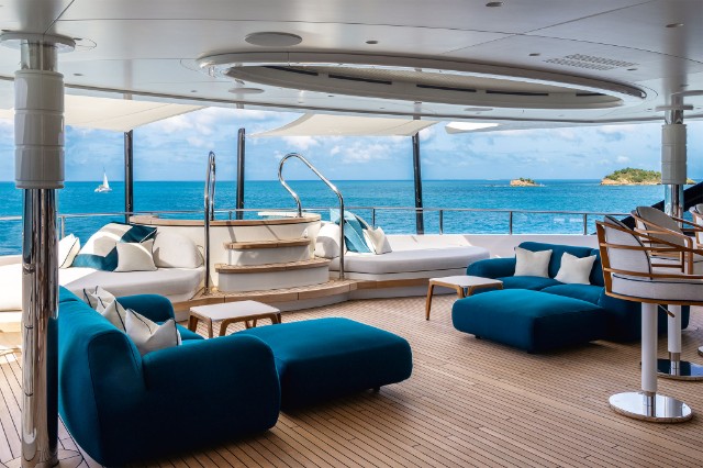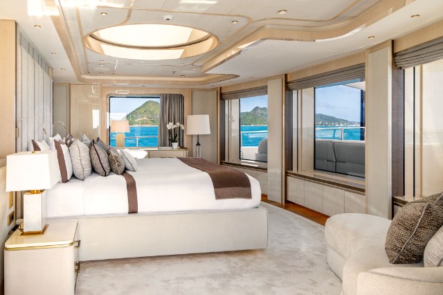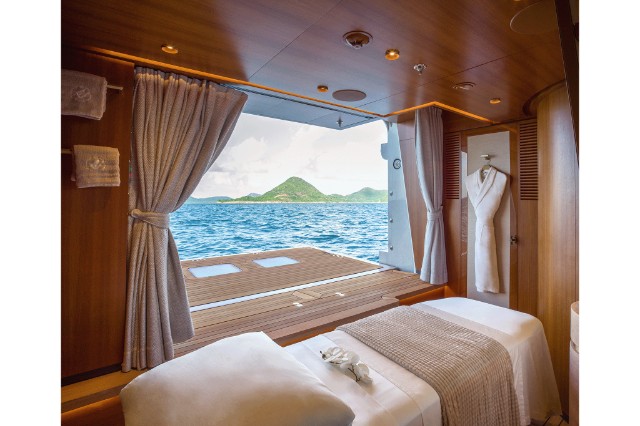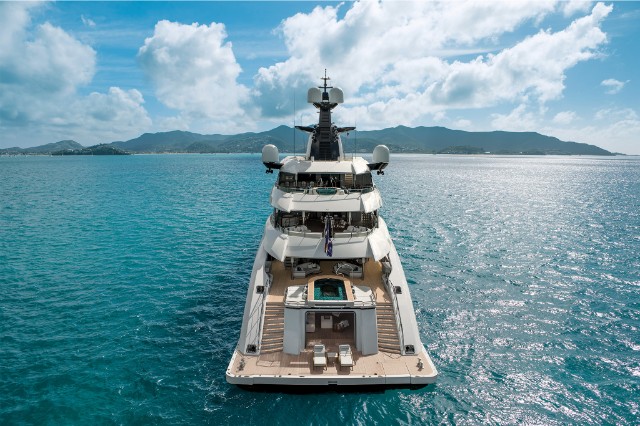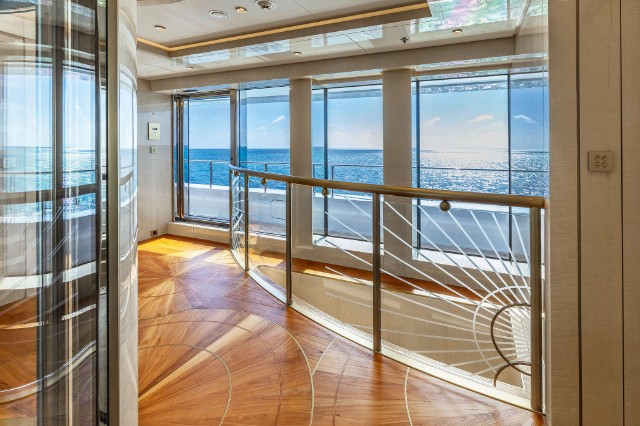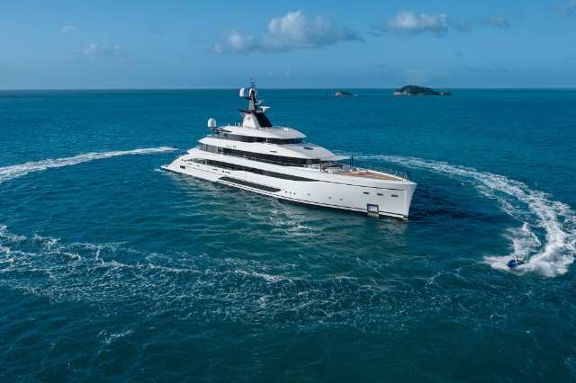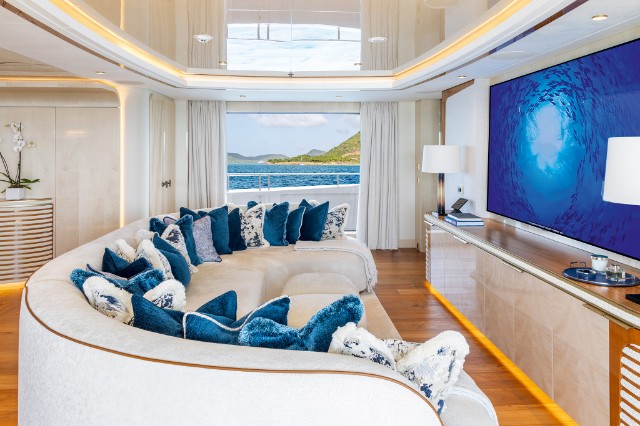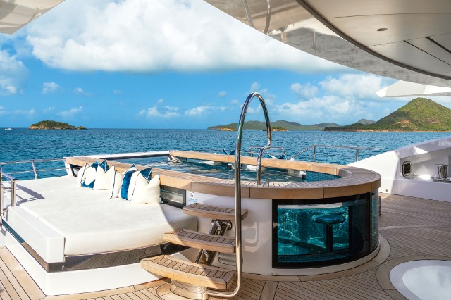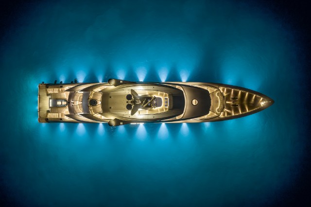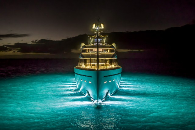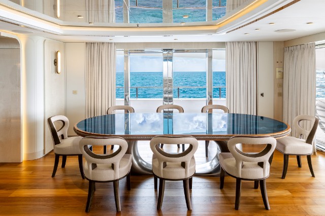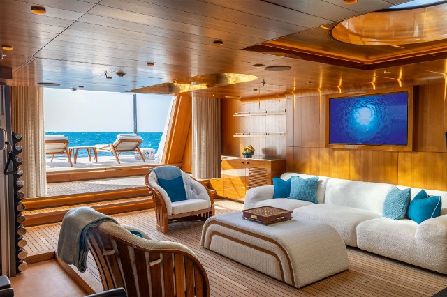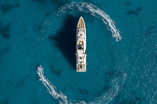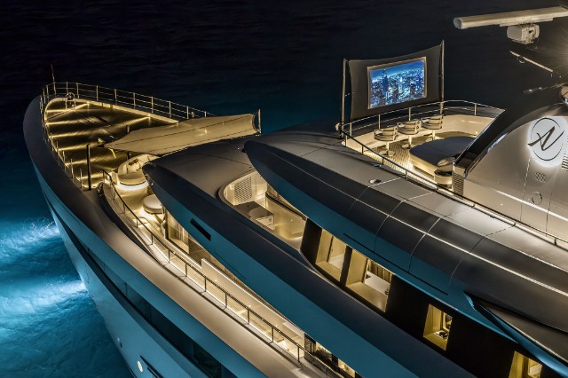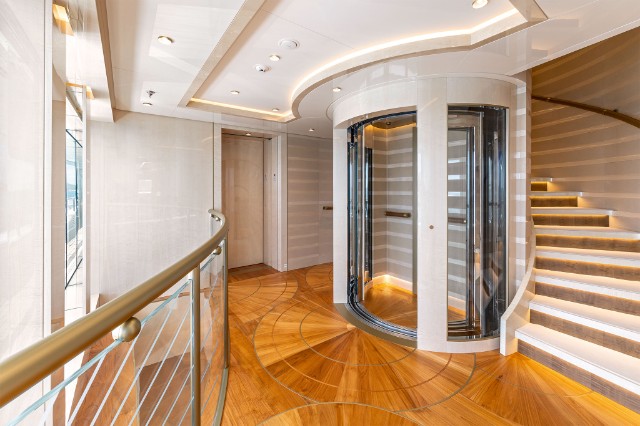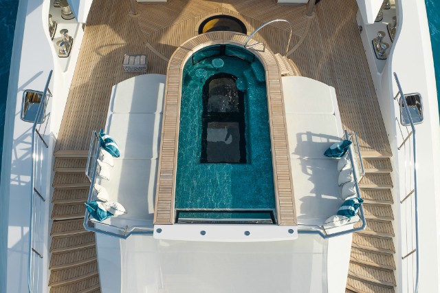 The yacht is fitted with a state-of-the-art hybrid propulsion system that increases the fuel efficiency of both the main engines and the generators and improves guests’ comfort while underway. A heat recovery system is also installed to optimize hot water management for the pools and plumbing system, reducing energy impact and costs while ensuring fast and efficient service.